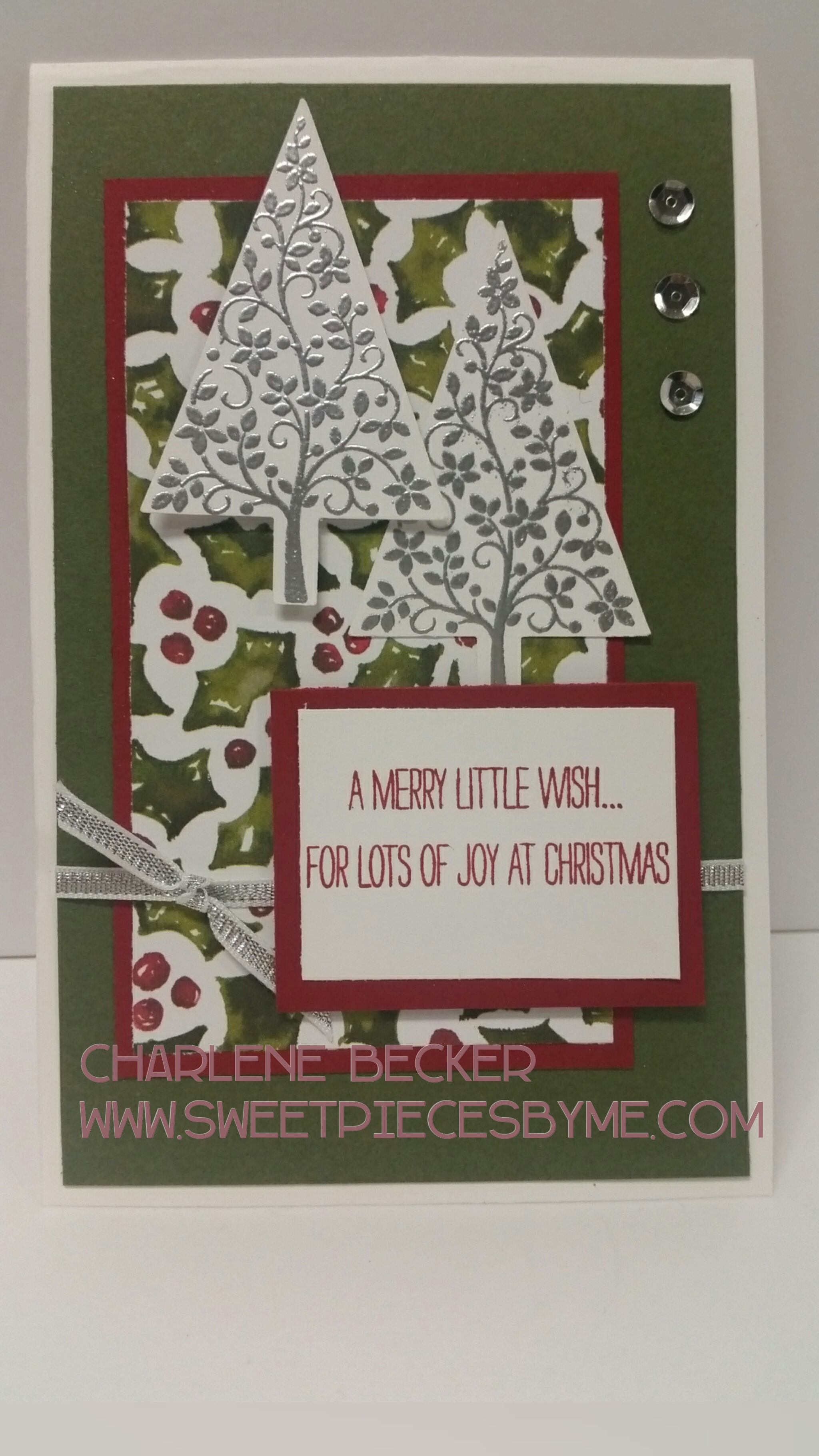 For the heart, I cut it out from the spiderweb doily, the inked the back of it with Soft Sky. The designer paper I used is Season of Cheer. I love how you can use several pieces of it for “other” occasion cards, not just Christmas…we all know how much leftover DSP we have after the holidays! 😉 I’m sure I’ll be posting some cards using leftovers later in December! 🙂