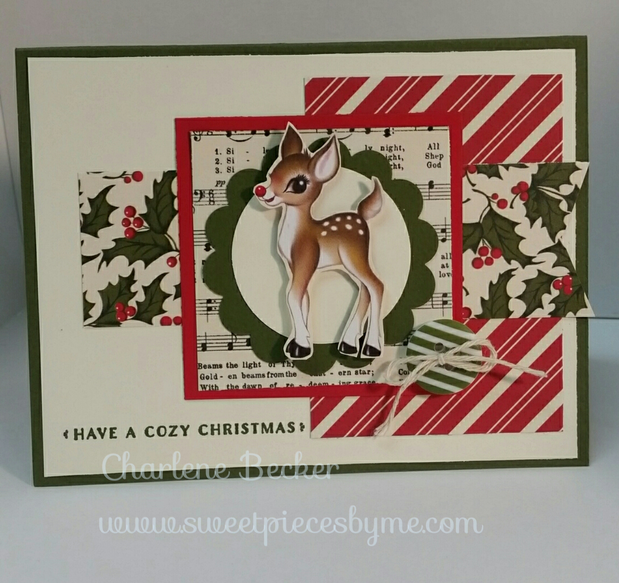 I had fun cutting out the sweet little deer on this card. It’s Rudolph! The paper has about 20 little reindeer you could punch, cut out or use whole! So versatile!