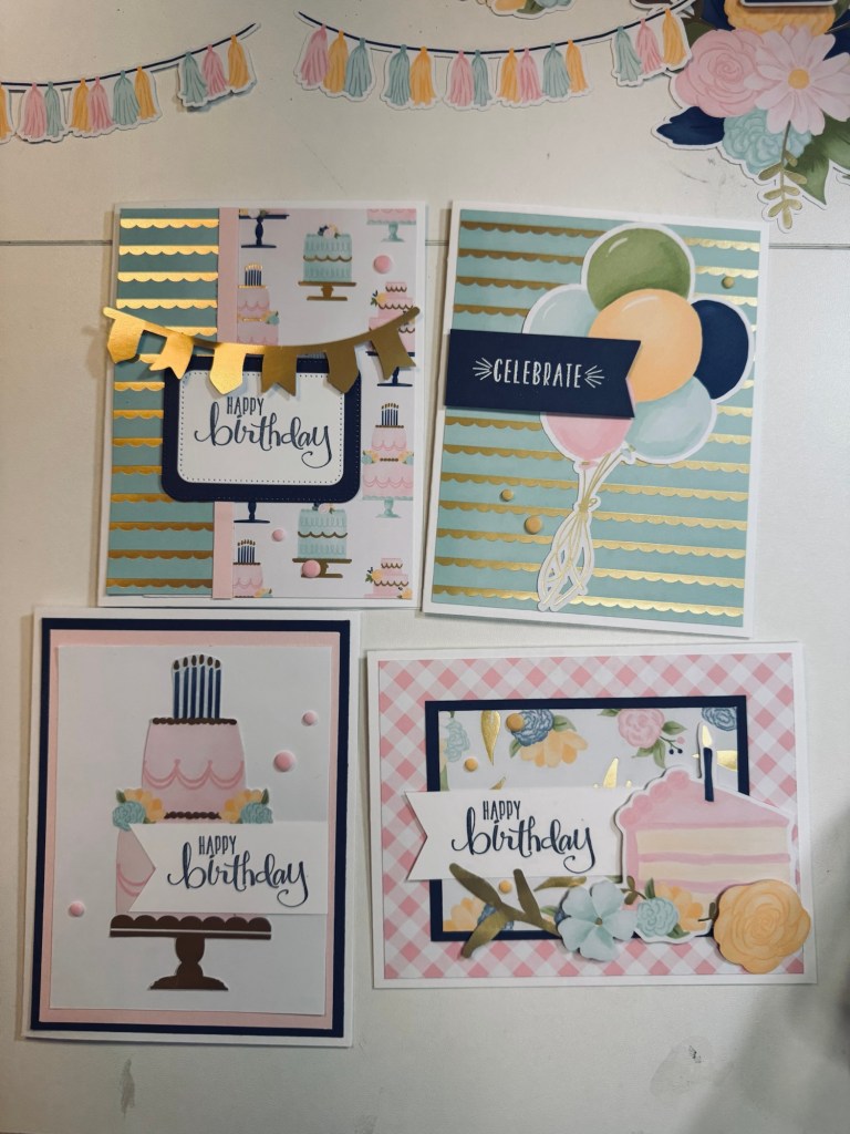 Here are some designs. I had fun with making birthday cards with the same designer series paper.