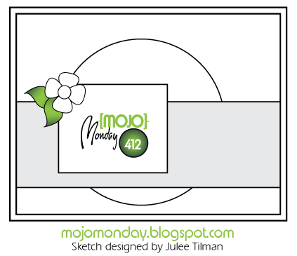 Yep, time got away from me this week! I am just now posting my card for the Mojo Monday Challenge. I would love to blame this on something or someone…such as, my 3 year old son is sick and has been coughing A LOT, my upline’s meeting was today, I had to show my house this week, I had to clean the <insert whatever here>…but I won’t. I will just say, BETTER LATE THAN NEVER! HA! I am a major procrastinator so I think that has been and always will be my motto. 😉 Anyway, on to the Mojo Monday sketch and card!
